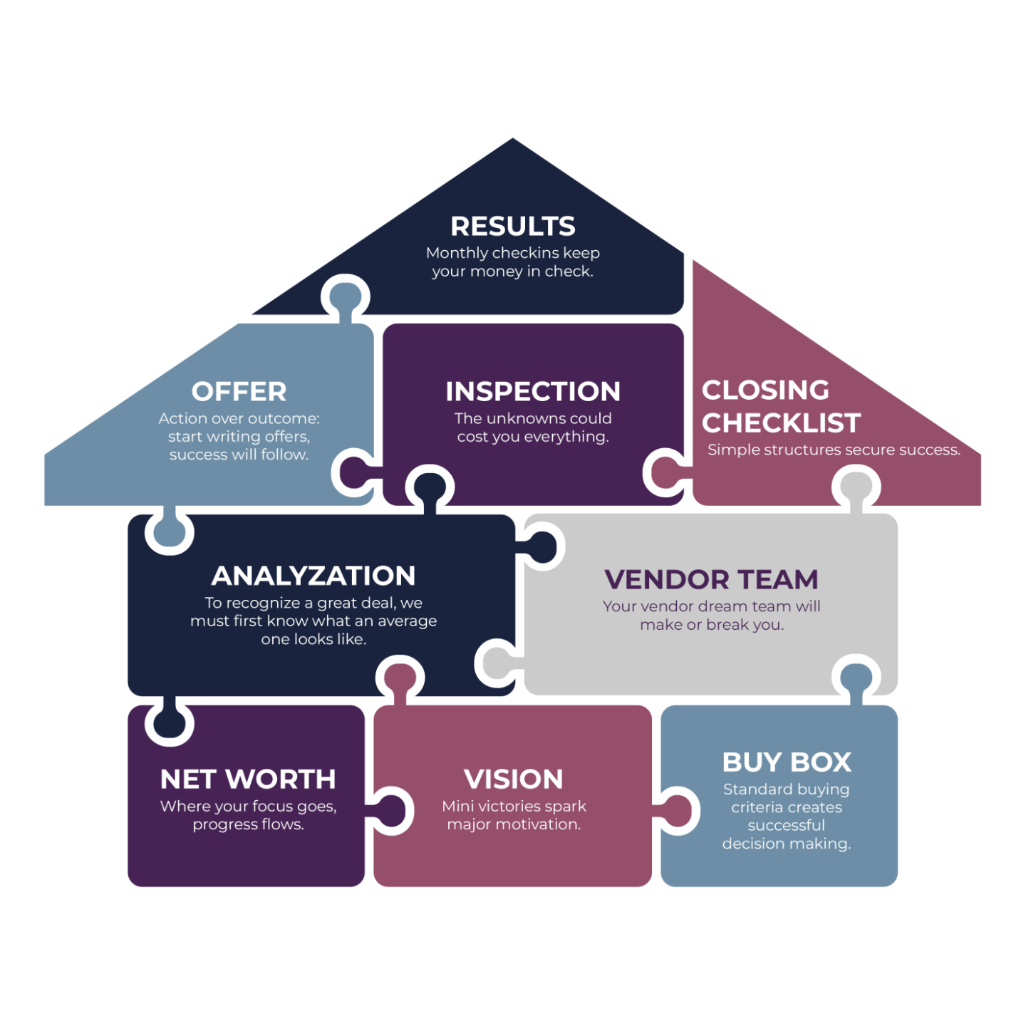 My 6-Figure Freedom process is a powerful blueprint designed to accelerate you toward a cash-flowing portfolio and true financial freedom. Youâll master: